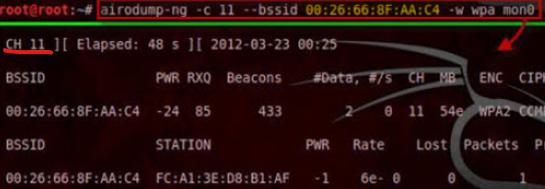 - 해킹할 무선 AP와 단말(스테이션) 사이 패킷 수집