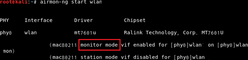 - airmon-ng : 무선랜 인터페이스를 Monitor 모드로 전환시키는 프로그램