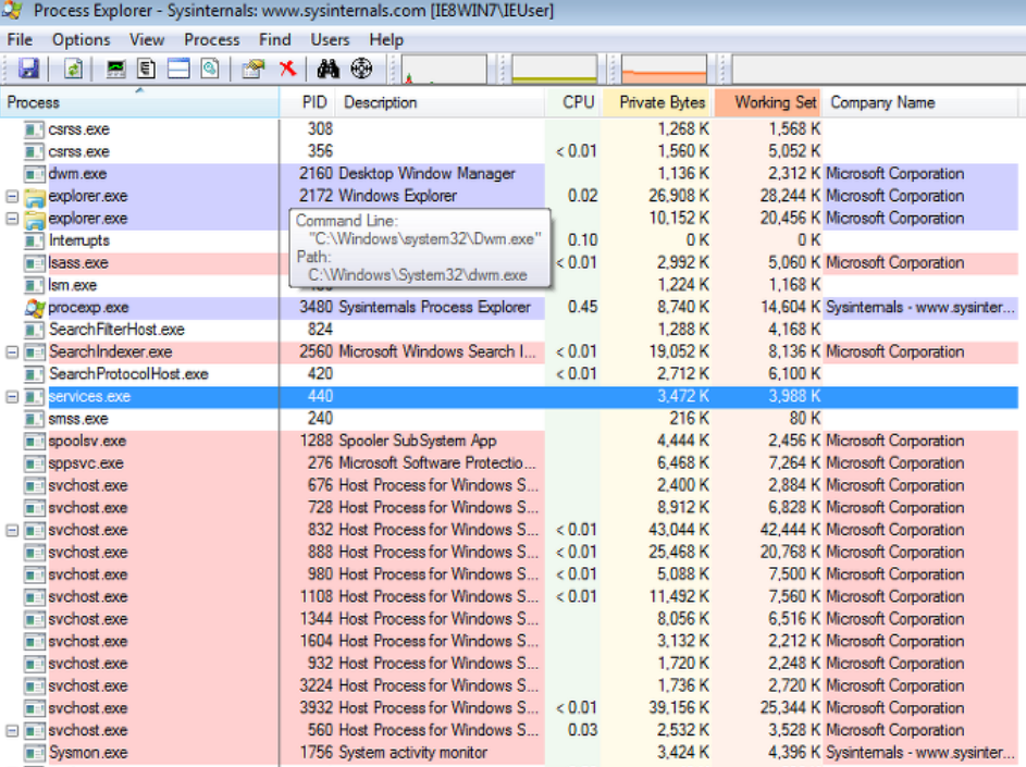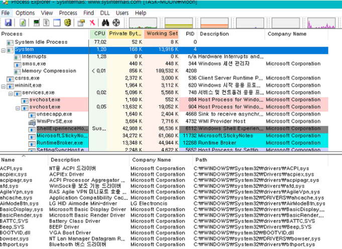 * Process Explorer 주요 기능