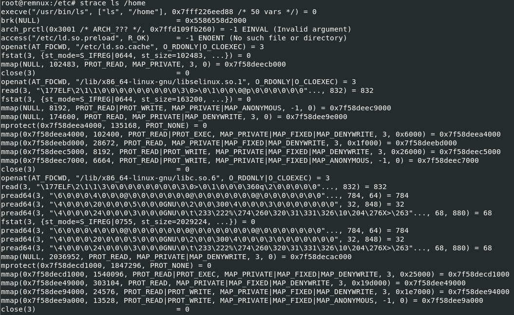- 명령어 형식 : strace [명령어 or 실행 가능한 파일]