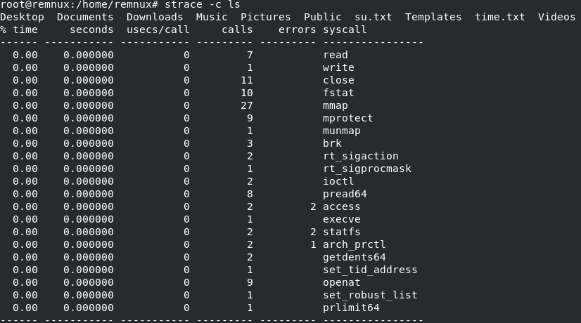 - 명령어 형식 : strace -c [나머지 동일 명령]