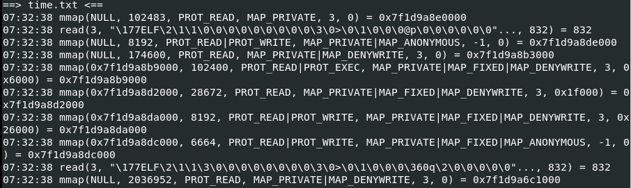 - 명령어 형식 : strace -t [나머지 동일 명령]