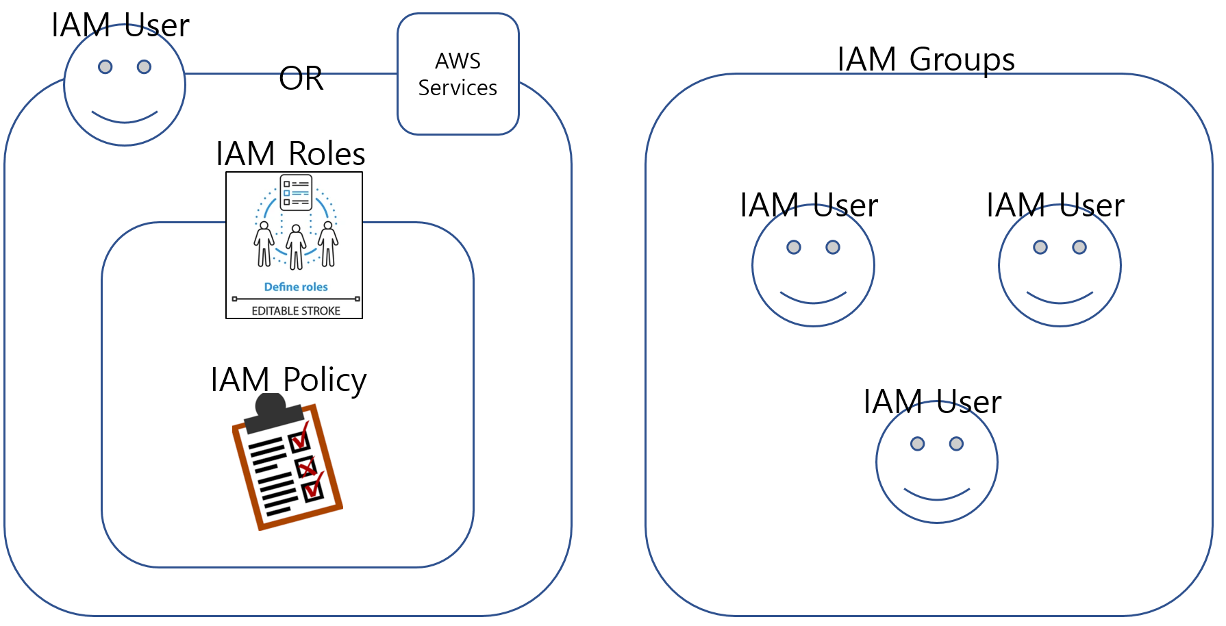 - 동일한 권한을 가진 여러 IAM 사용자들을 그룹으로 구성하여 권한을 효율적으로 배포하기 위한 틀 (그룹핑)