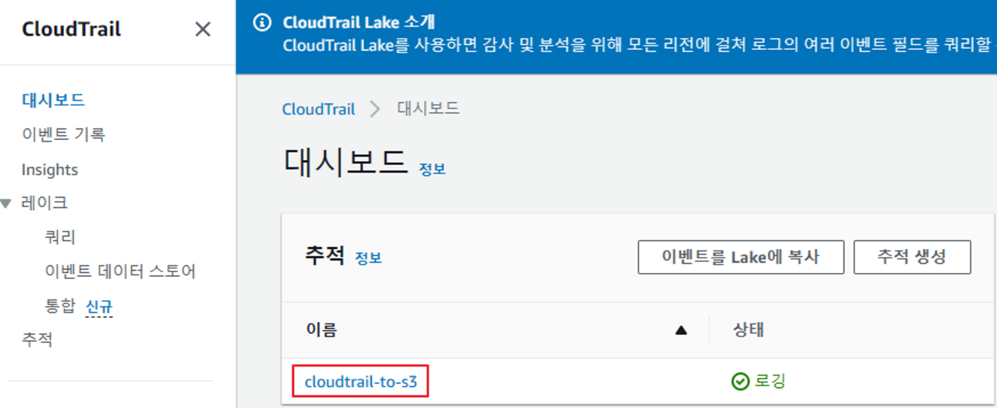 2) CloudTrail <> S3 연동 확인