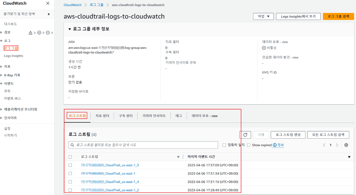3) CloudWatch의 로그 그룹에서 정상 생성 확인
