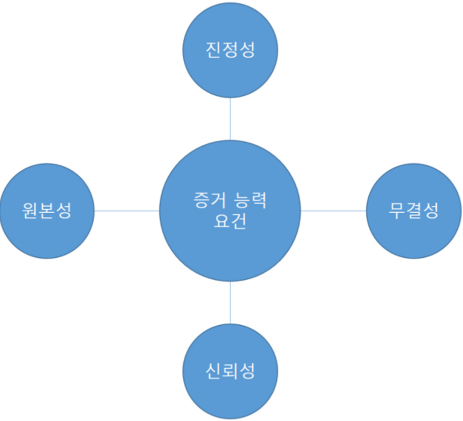| 원본성 | * 제출한 증거가 원본임을 입증 - 분석 과정에서는 사안에 따라 사본을 제출하더라도 원본과 동일하다는 증명 가능할 시, 무관 |