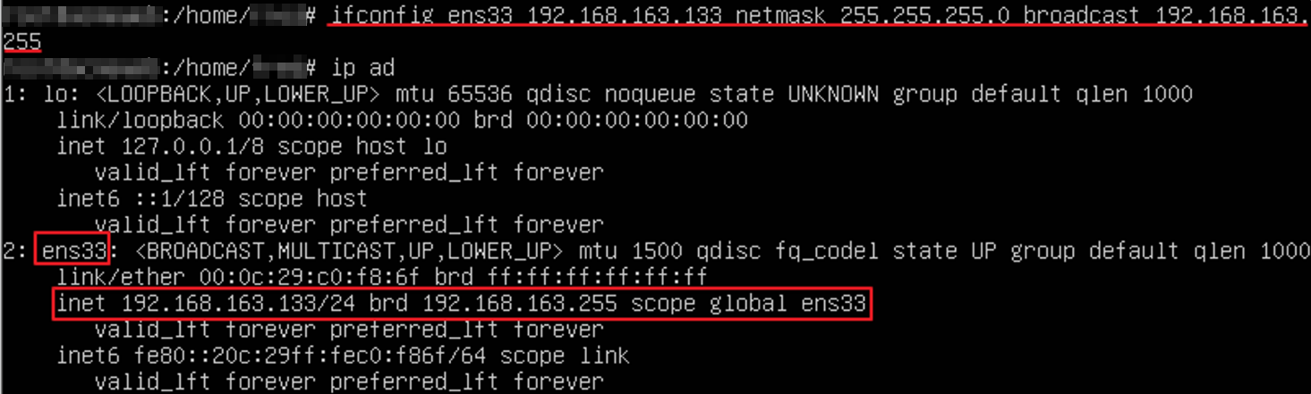 - ip ad (ifconfig와 유사) 명령어를 통해 Network 대역 확인 후, 동일 대역으로 맞춤