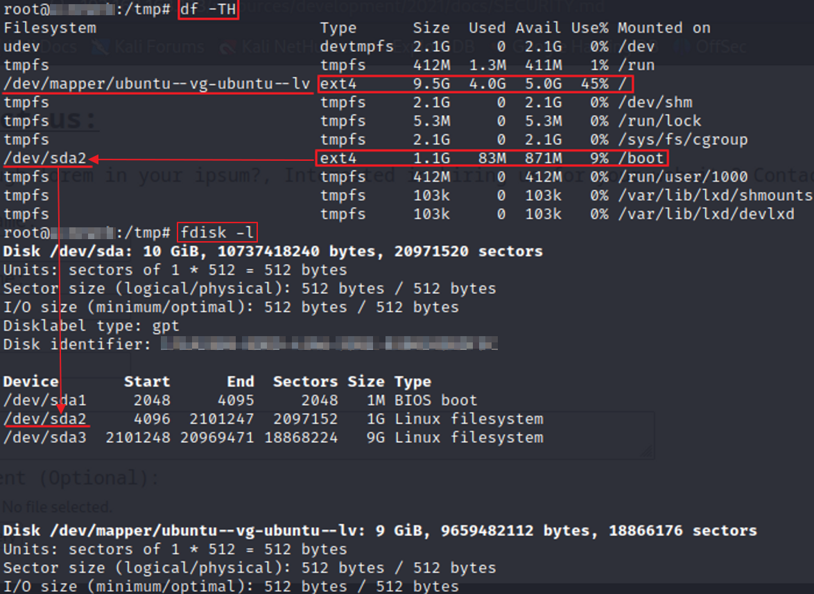 - 분석 대상의 Disk 상태 확인 (df -TH 후 fdisk -l)