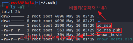 - 사용자_홈Directory/.ssh 경로의 authrized_keys에 있는 공개키를 타 호스트로 locate