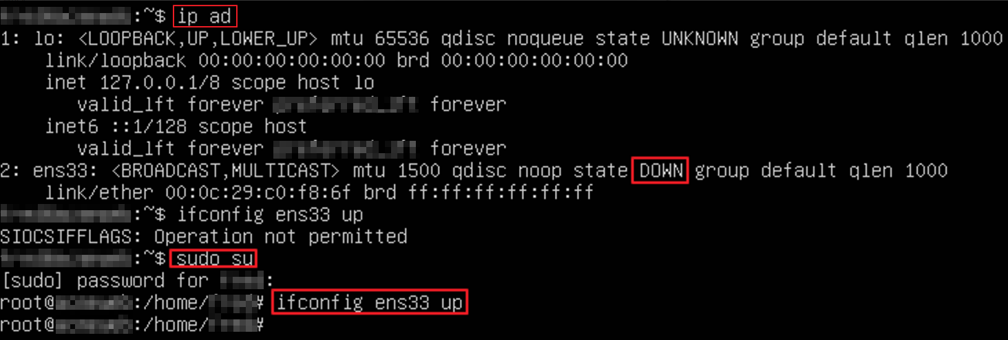 (대부분 가상 이미지로 부팅 시, 네트워크 인터페이스가 DOWN 상태이므로, UP으로 변경 필수)