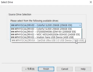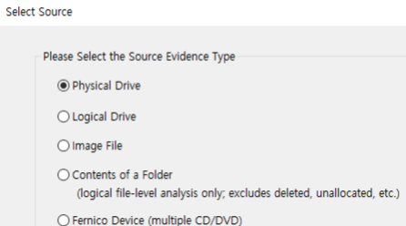 - Physical Drive : 물리적으로 연결된 저장 매체 전체를 불러와 복제