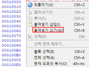 (복사한거라고 그냥 Ctrl + V(삽입)으로 붙여넣으면 한 섹터씩 뒤로 밀리기 때문에 파티션이 망가지므로 주의)