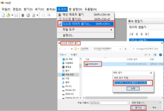 1) HxD로 이미지 파일 로드