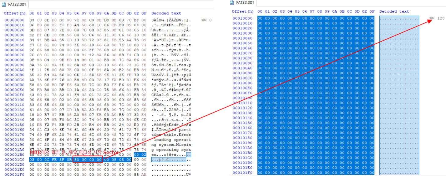3) FAT32 시작 섹터 + 1 구간 확인
