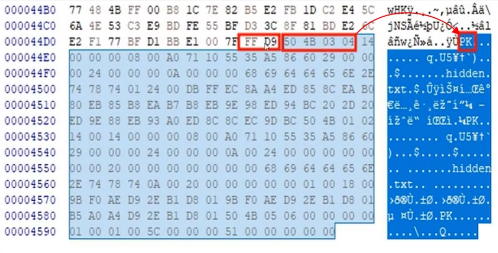- EOI 검색 후, 파일이 완전히 끝나는 형태가 아닌, 후미에 추가적인 데이터 값이 잔재한다면, Steganography로 강하게 의심할 수 있다.