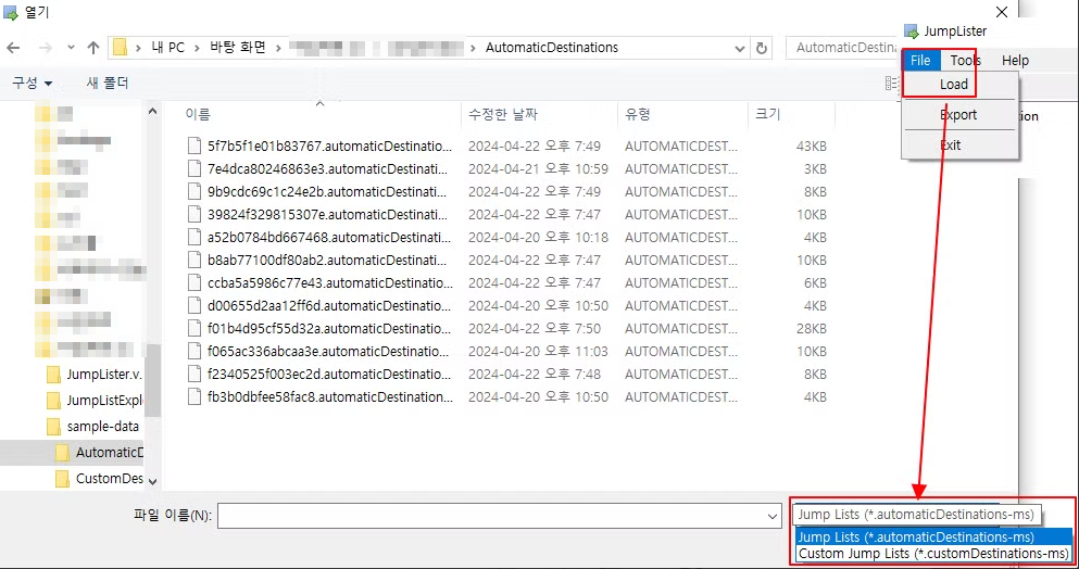 - 이후, JumpLister 실행 후 Automatic인지 Custom인지, 유형을 지정하고 Load
