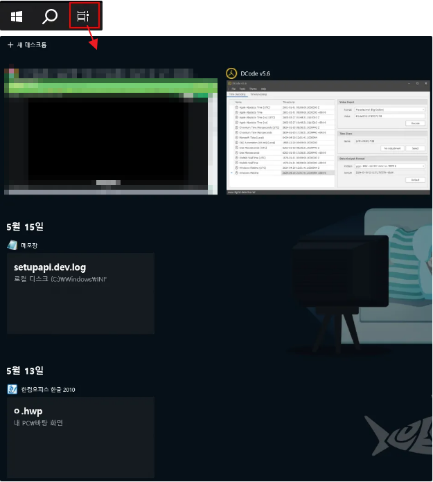 - 사용자의 최근 활동 내역을 최대 30일까지 확인 가능한 기능 (Windows + Tab 버튼 / 작업표시줄의 작업 표시 버튼)(단, Windows 11에서는 제외되었다. Win11 너무 불편...)