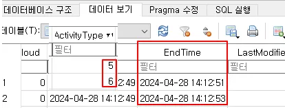 | End Time | * 프로그램 종료 시간을 의미 (출력 값은 Dcoding 하거나, 출력 방식을 변경해야 함) ![]() - Activity Type 5인 경우 : 응용프로그램 종료 시각 (Last Modified Time과 동일) - Activity Type 6인 경우 : 응용프로그램이 비활성화된 시각 (사용자가 커서로 직접 컨트롤 하지 않게 비활성화 된 상태 / 다른 프로그램 사용으로 이동 등) |