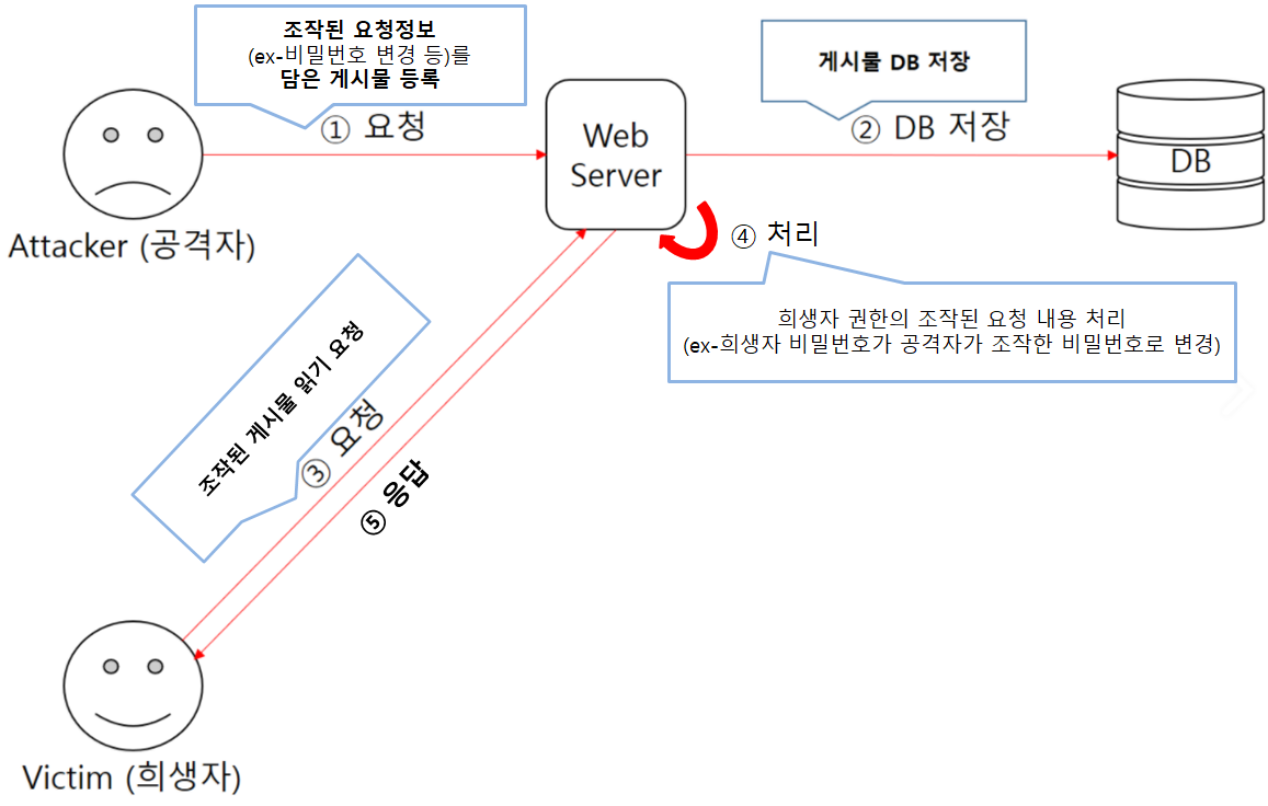 - XSS와 달리 단순 정보 유출에 국한되지 않고, 악성 스크립트로 사용자 쿠키 값, 세션 정보 특정 사이트로 이동