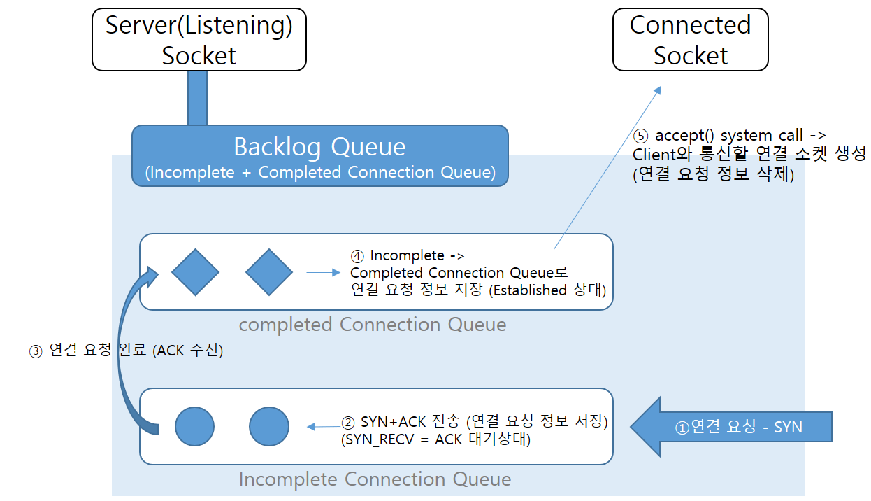 | 연결요청 대기 큐 증가 (Backlog Queue) |