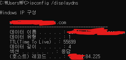 1) ipconfig /displaydns : 로컬 DNS 캐시 정보 조회