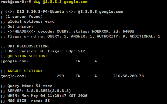 - ANSWER Section : 질의에 대한 응답이 출력