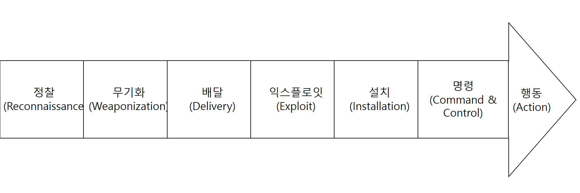 | 무기화 (Weaponization) | 공격에 이용할 무기를 준비 | 악성 프로그램, 트로이목마 | 로그/프로세스 모니터링, 오용탐지 |